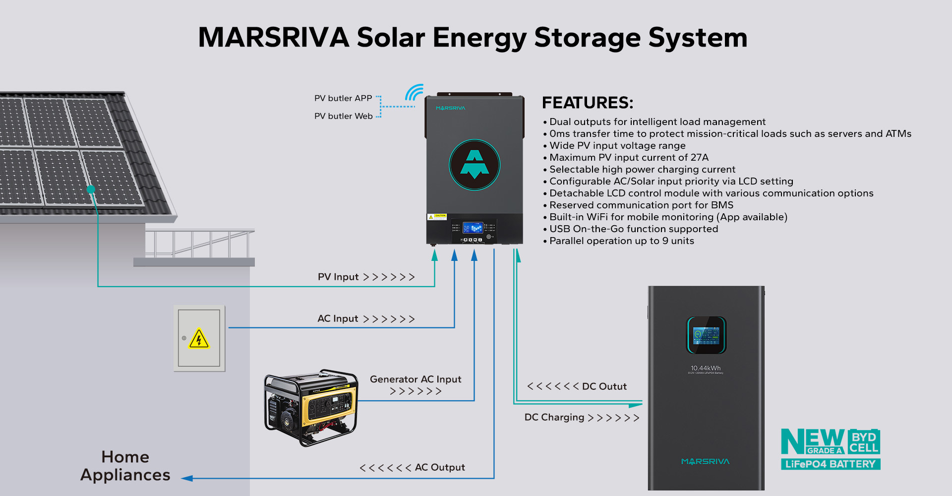 | Max. Charging Current | 120A (AC charging plus solar charging) | ||||||