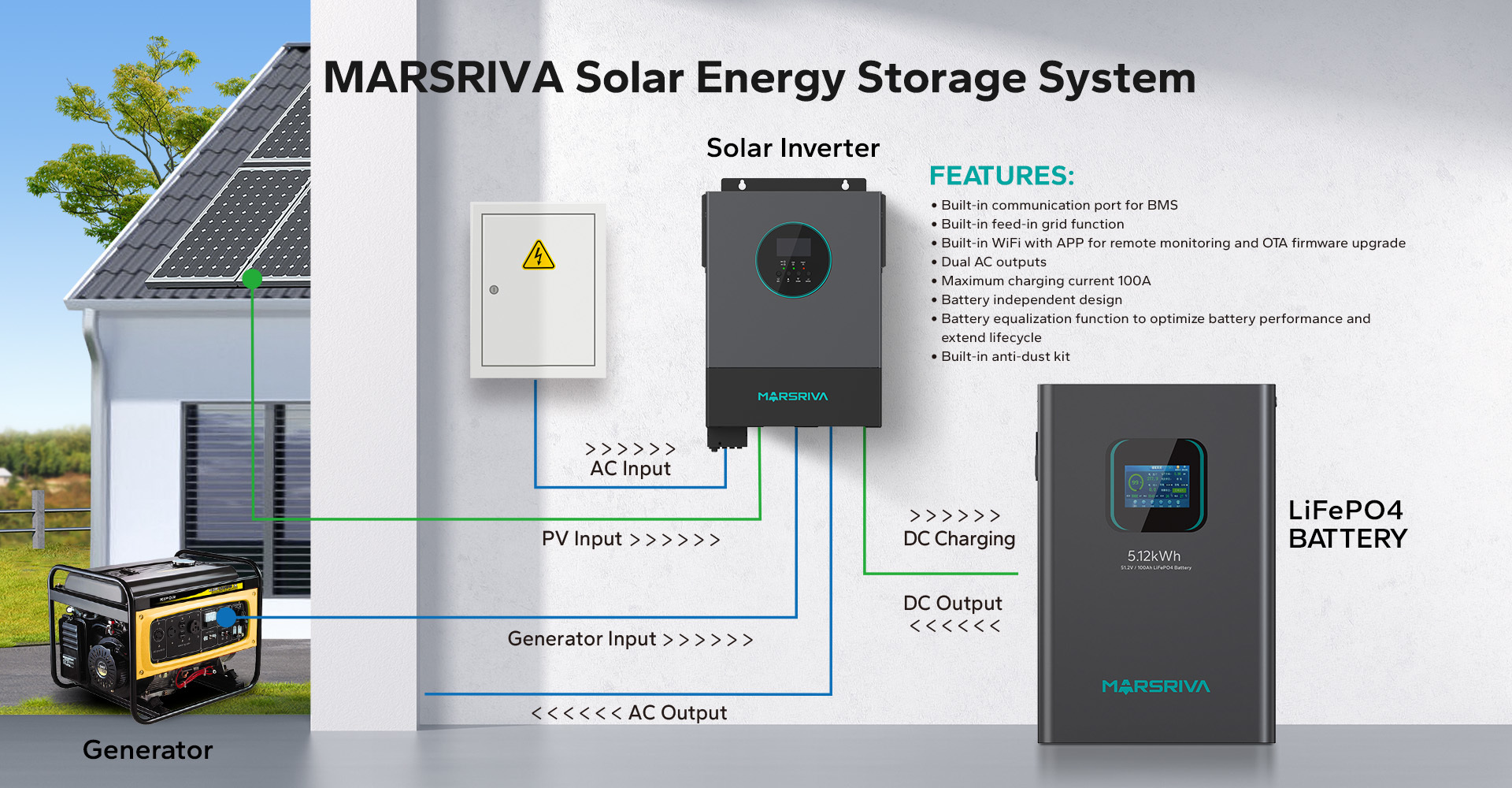 | Output Power | 6200W with PV & battery, 5000W with battery only | ||||||